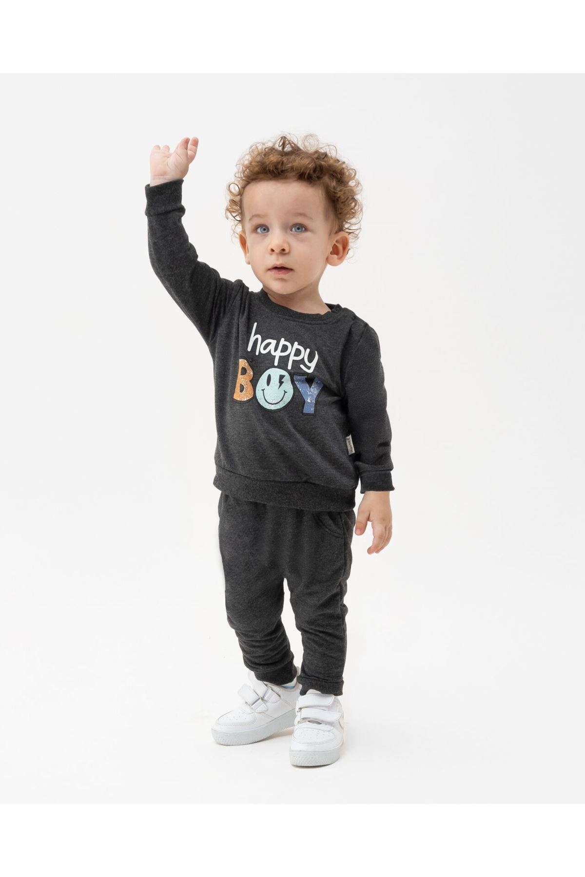 Erkek Bebek Antrasit Gri Happy Boy Yazılı 2'li Takım