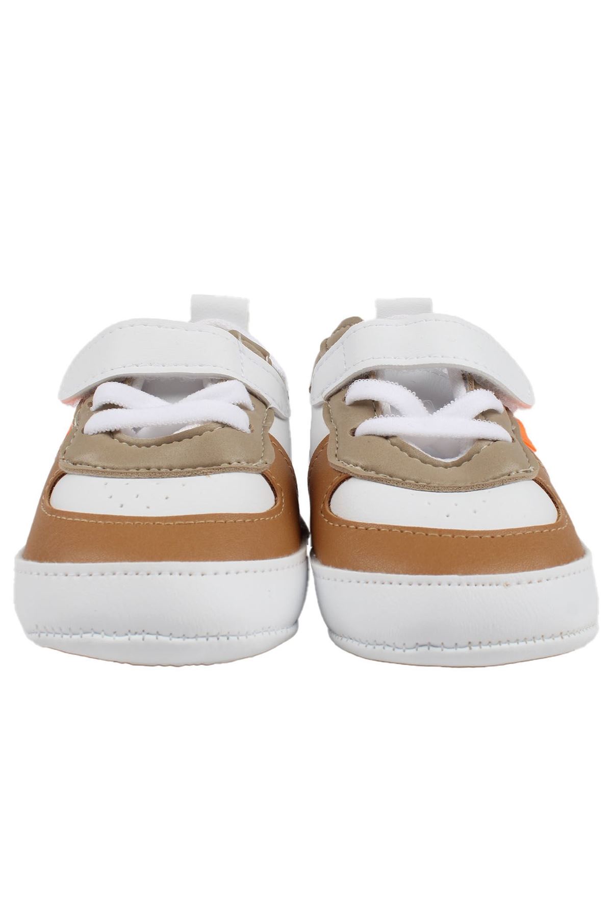 Erkek Bebek Beyaz Kahve Bağıcıklı Çıtçıtlı Deri Ayakkabı
