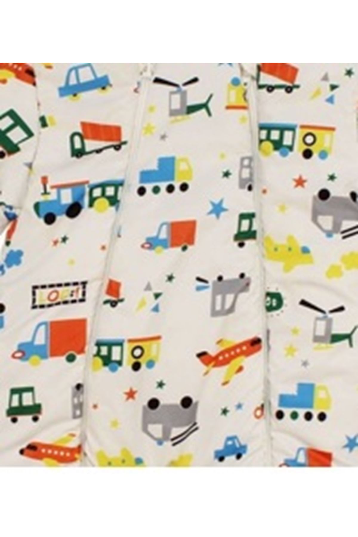 Şık beyaz zemin üzerindeki araba ve uçak desenleri, ürüne enerjik bir görünüm kazandırır. Patikli tasarımı ayakları da sıcacık tutarken, çift fermuar detayı sayesinde giydirme ve çıkarma işlemi oldukça pratiktir.