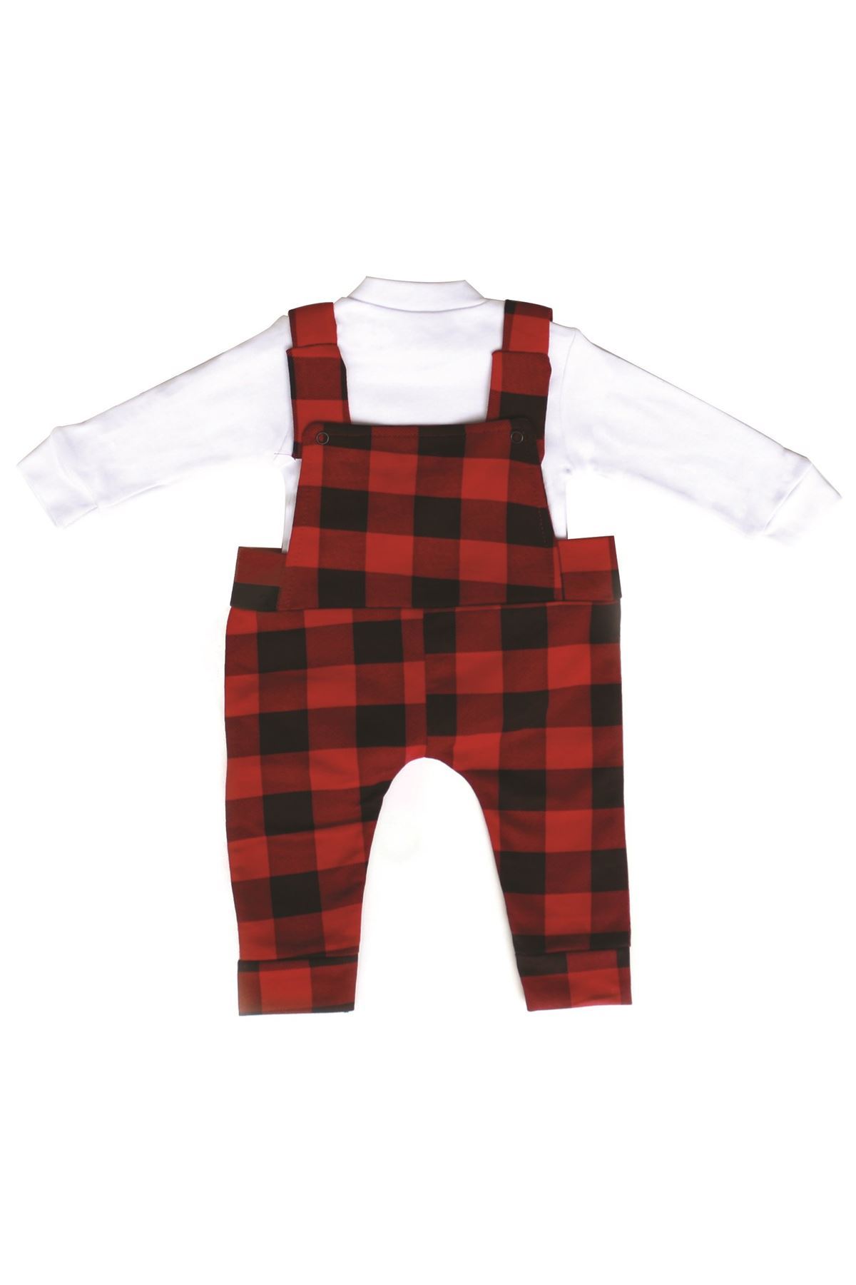 Erkek Bebek Ekoseli Badili Salopet Tulum