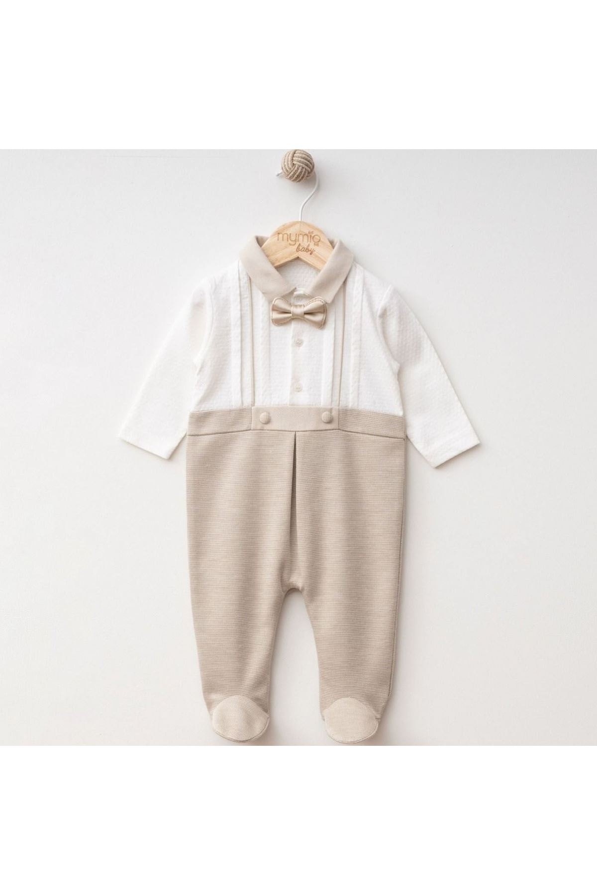 Erkek Bebek Ekru Kahve Papyonlu Patikli Tulum