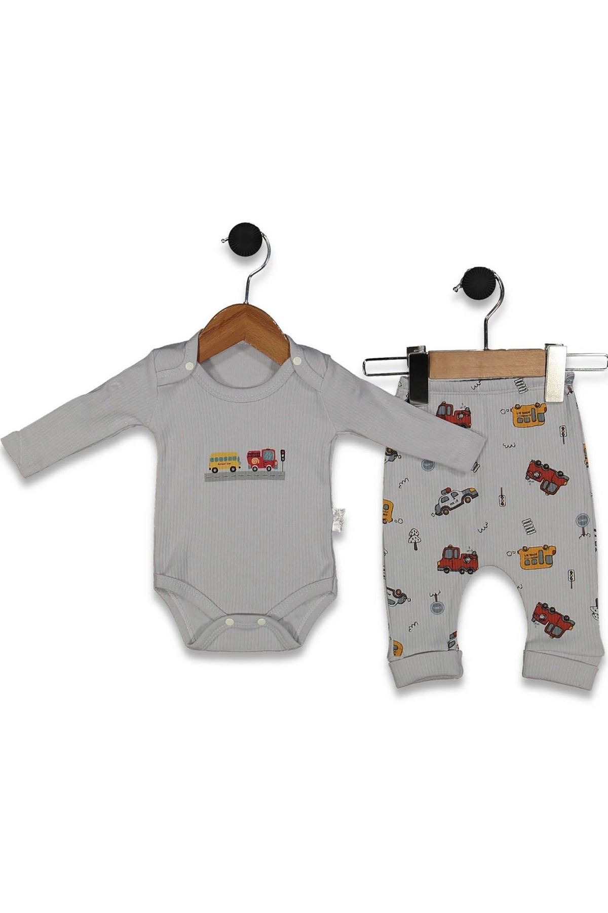 Erkek Bebek Gri Araba Desenli Zıbınlı 2'li Takım