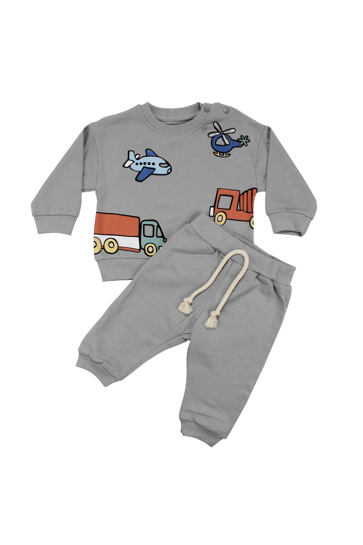 Ürün Açıklaması:Erkek Bebek Gri Uçak Kamyon Baskılı 2’li Takım, miniklerin rahatlığı ve günlük şıklığı için özel olarak tasarlanmıştır. Yumuşak pamuklu kumaşı, bebeğinizin hassas cildine nazikçe temas eder ve gün boyu konfor sağlar. Gri ton üzerindeki uçak ve kamyon baskıları, neşeli ve enerjik bir görünüm kazandırır. Üst ve alt parçadan oluşan bu takım, hem evde hem de dışarıda kullanım için idealdir.