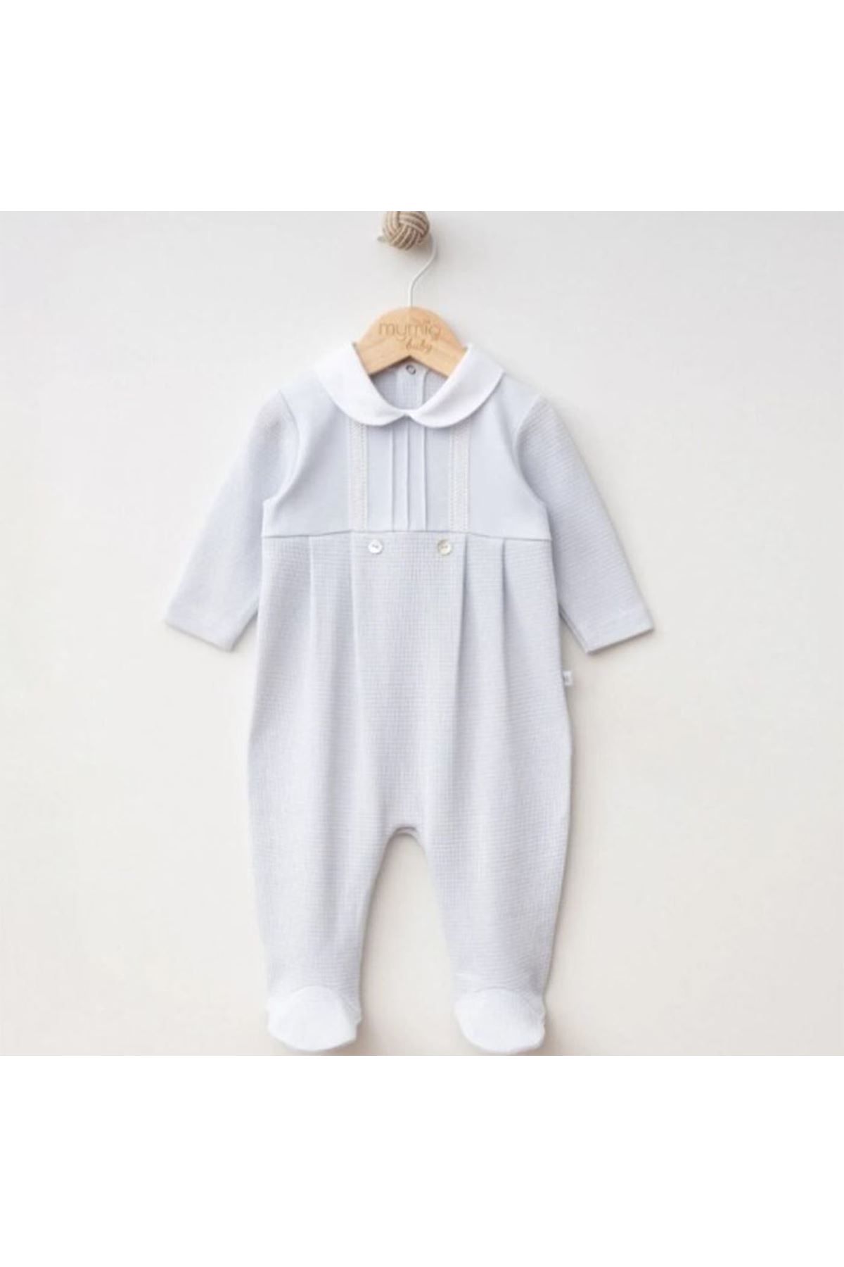 Erkek Bebek Mavi Yakalı Düğmeli Patikli Tulum