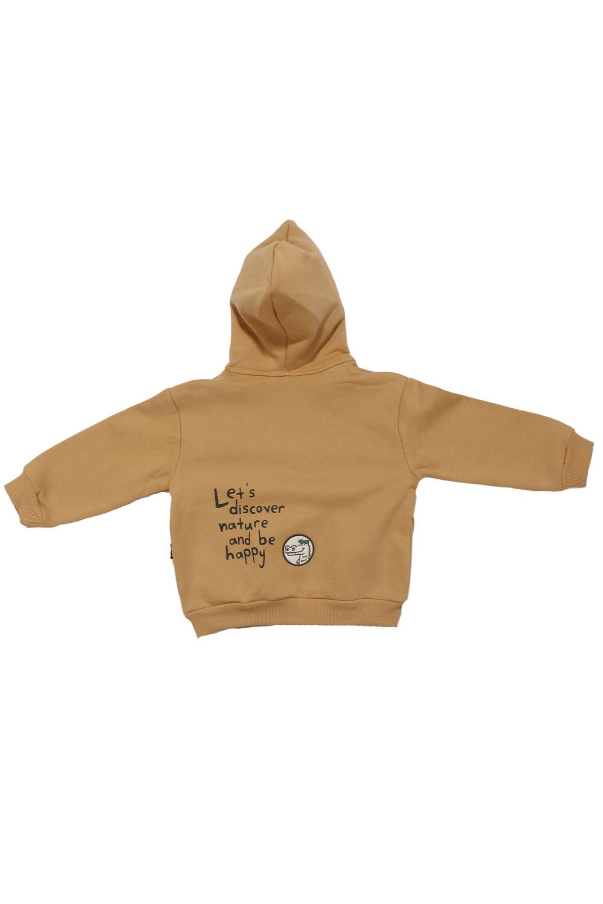 Erkek Cocuk Hardal Happy Yazılı 3 İp Kapüşonlu