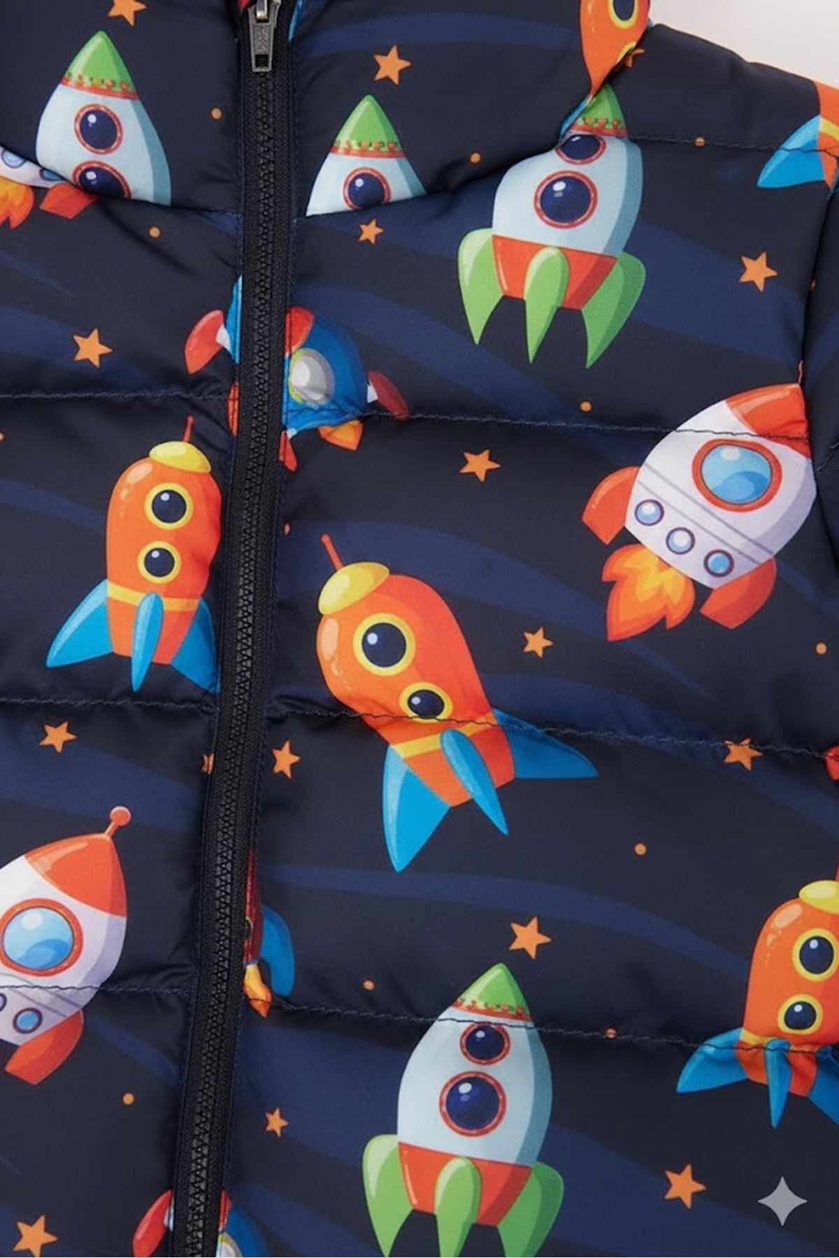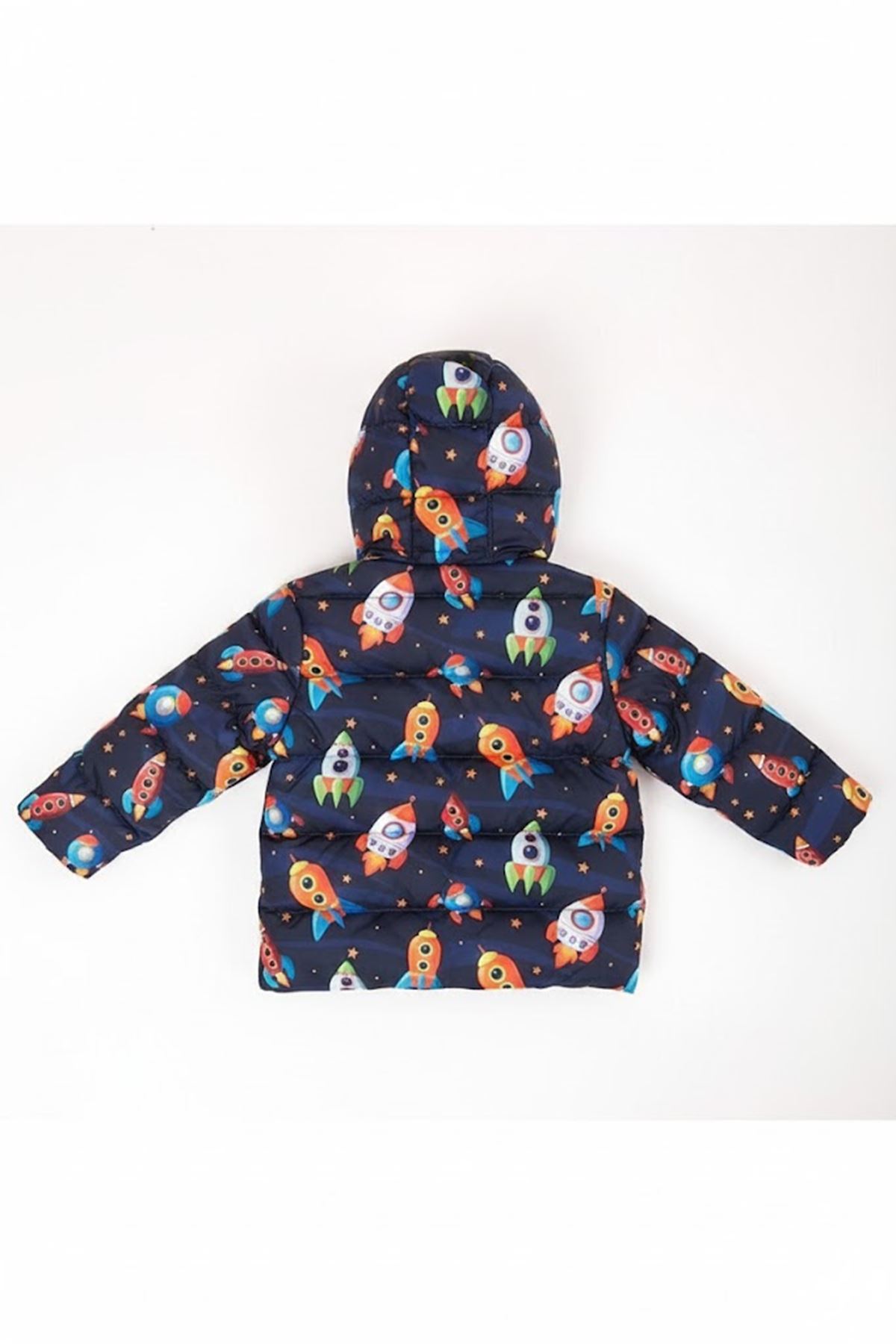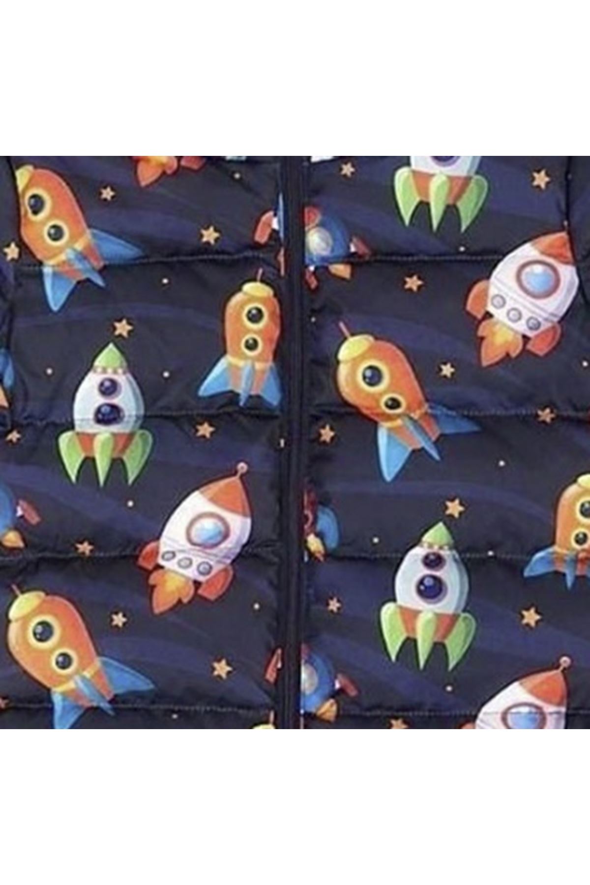 Erkek Çocuk Lacivert Turuncu Uzay Gemi Desenli Şişme Mont