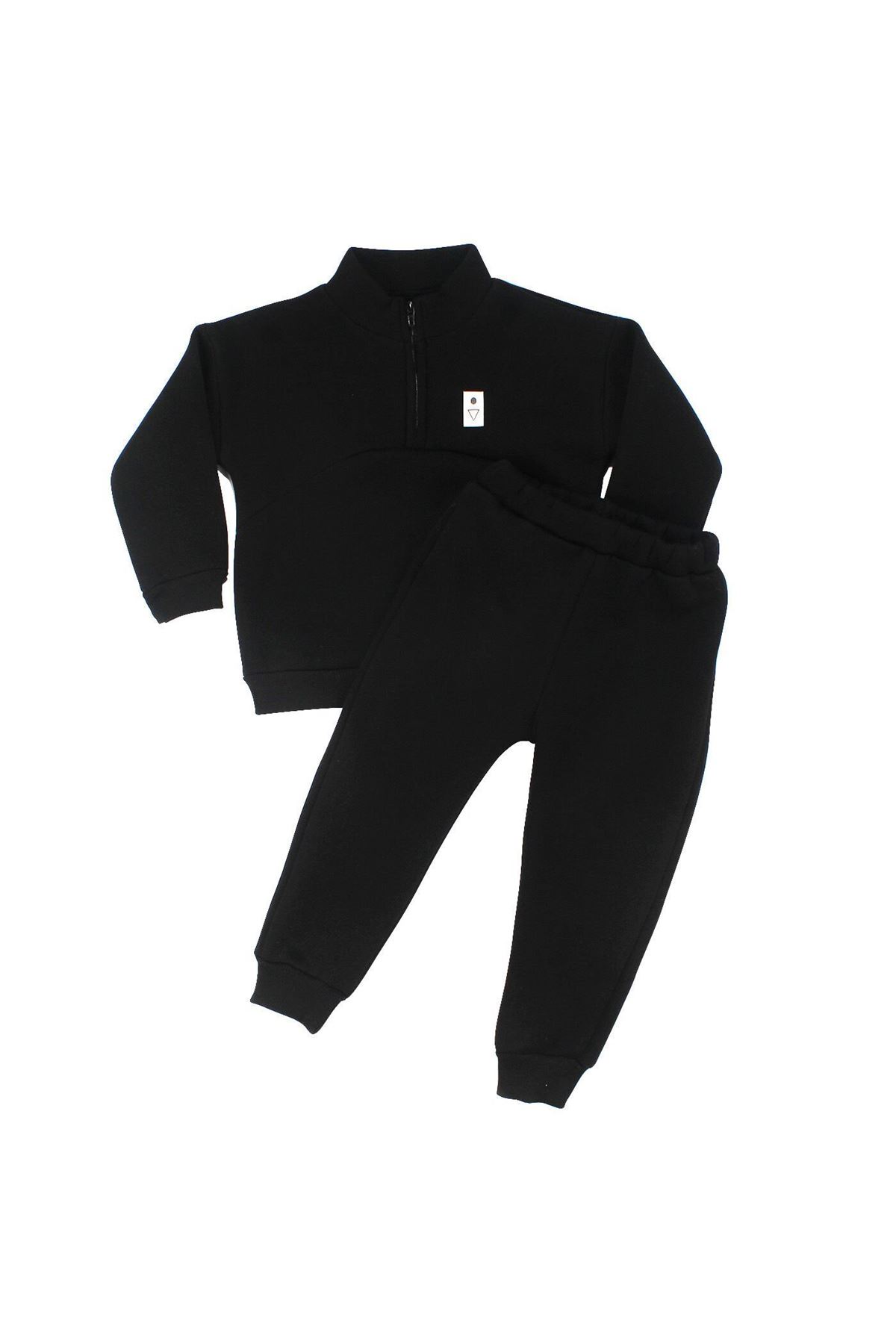 Erkek Çocuk Siyah Fermuarlı Yakalı Üç İp İkili Takım
