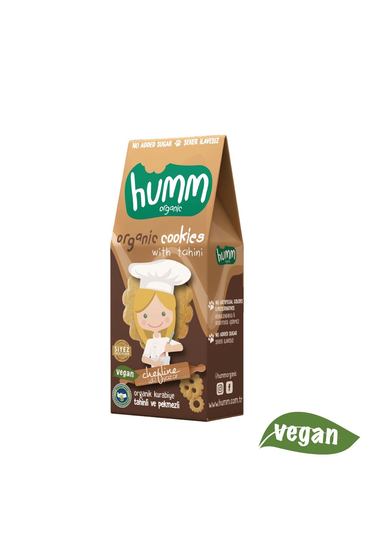 Renklendirici ve koruyucu içermeyen şeker ilavesiz sağlıklı atıştırmalık Humm Organic Tahinli Kurabiye kıtır kıtır lezzeti ile çocukların ve yetişkinlerin vazgeçilmezi!
