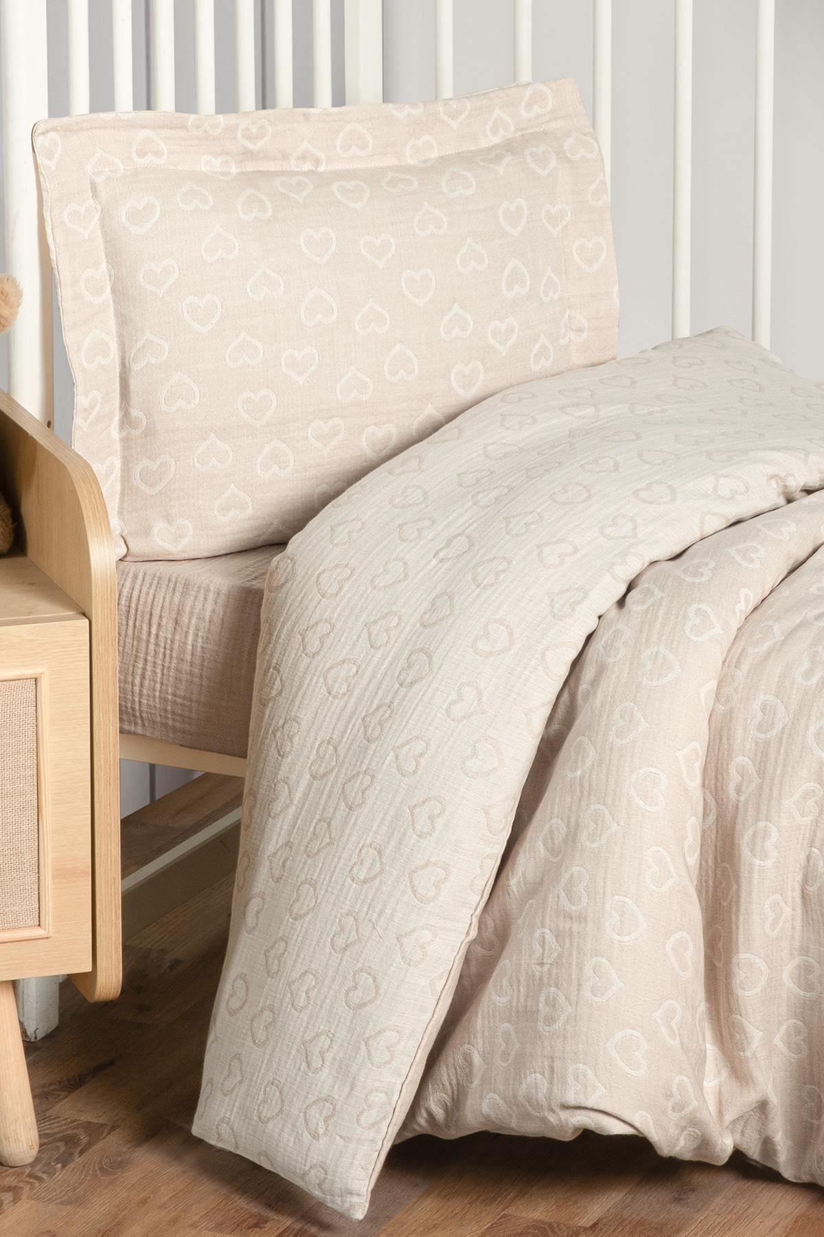 Kanz Jakarlı Müslin Bebek Nevresim Takımı Knz-013 Heart Kahve