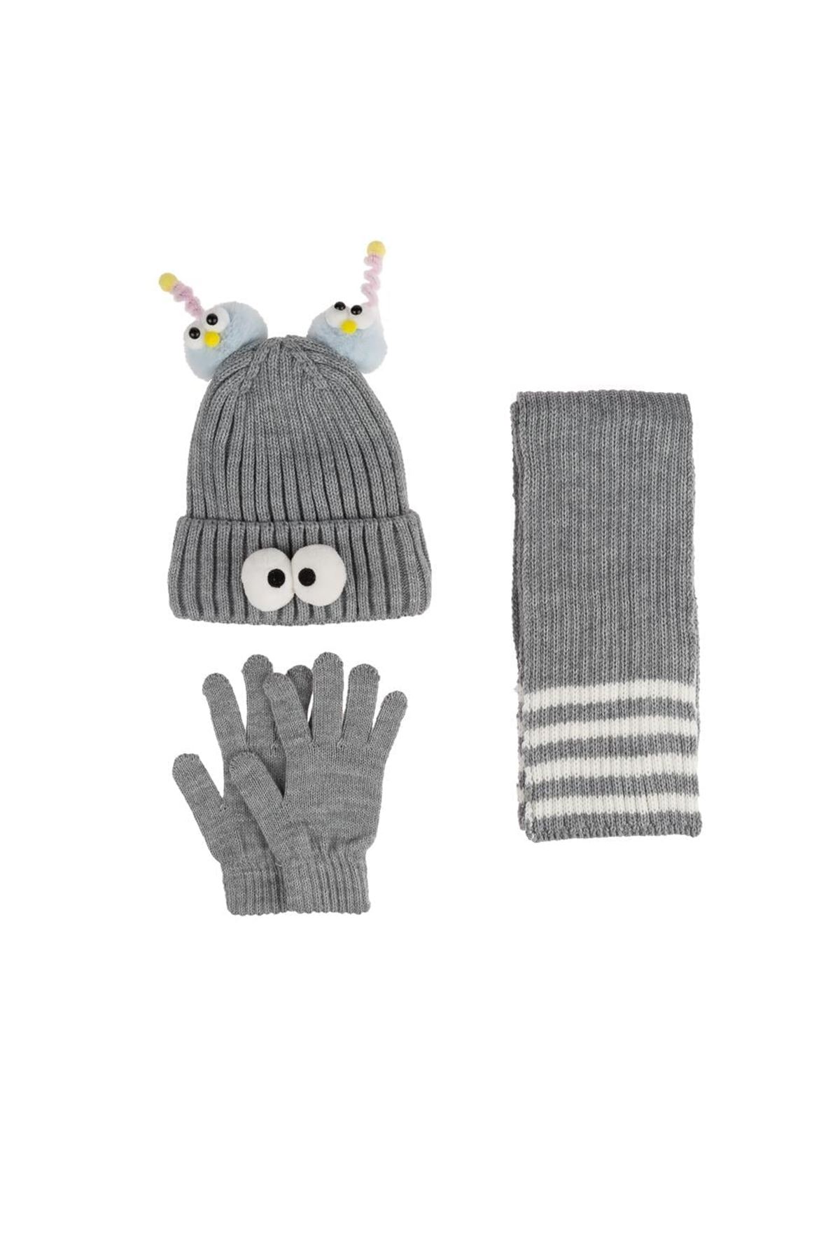 Kitti Çocuk Kız Atkı Bere Eldiven Takım (4-8 Yaş) K24170-09 Açık Gri