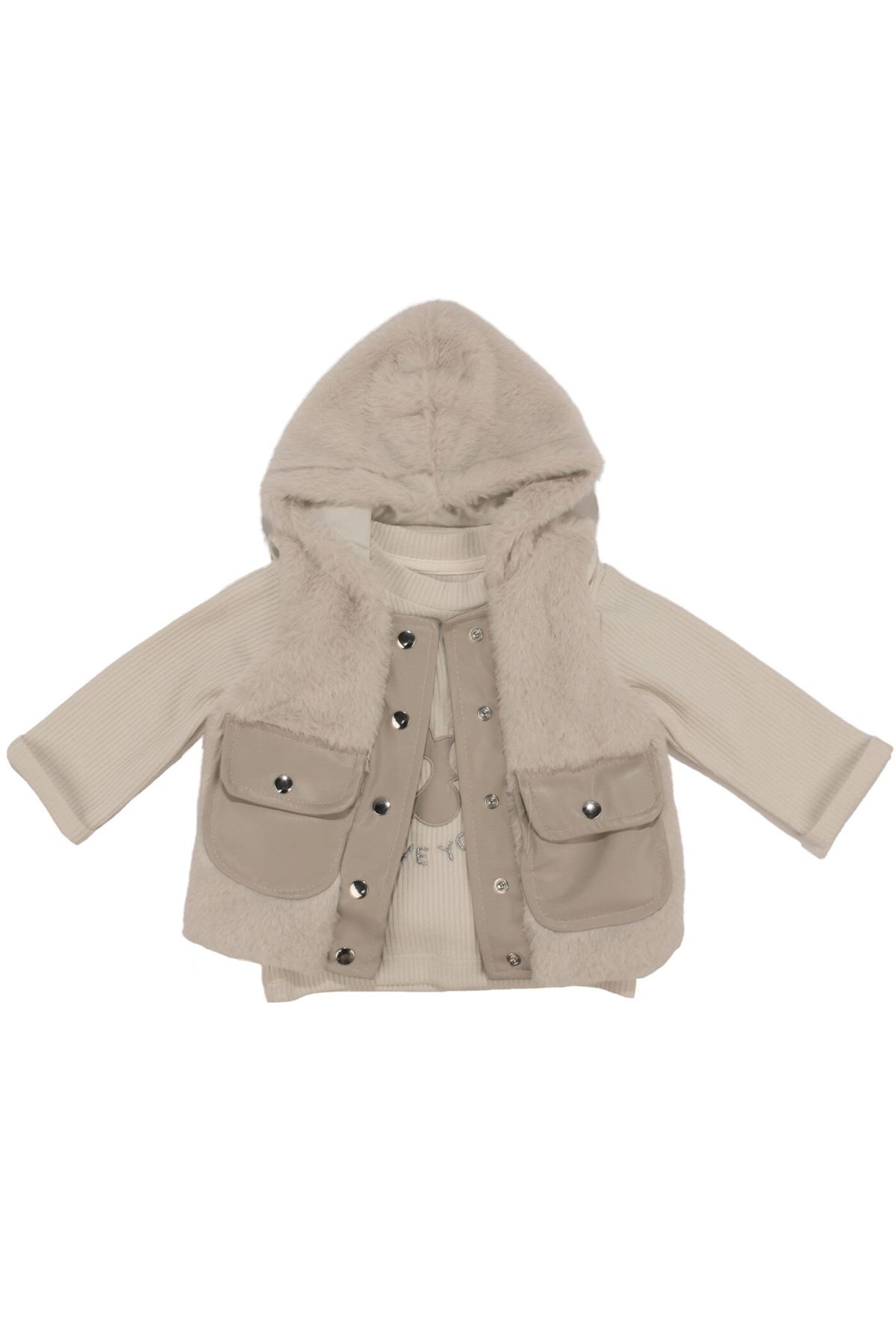 Ekru ve bej tonlarının zarif uyumu, bebeğinizin doğal şıklığını ön plana çıkarır. Hem rahat hem de kaliteli kumaş yapısıyla bebeğinizin cildine dost bir deneyim sunar.