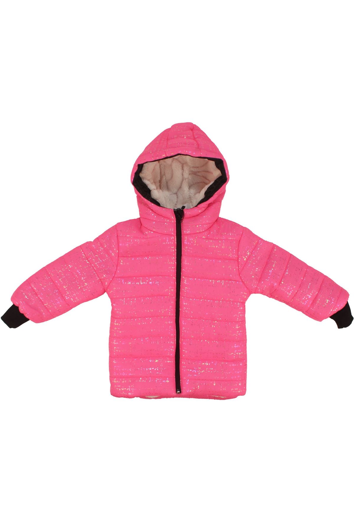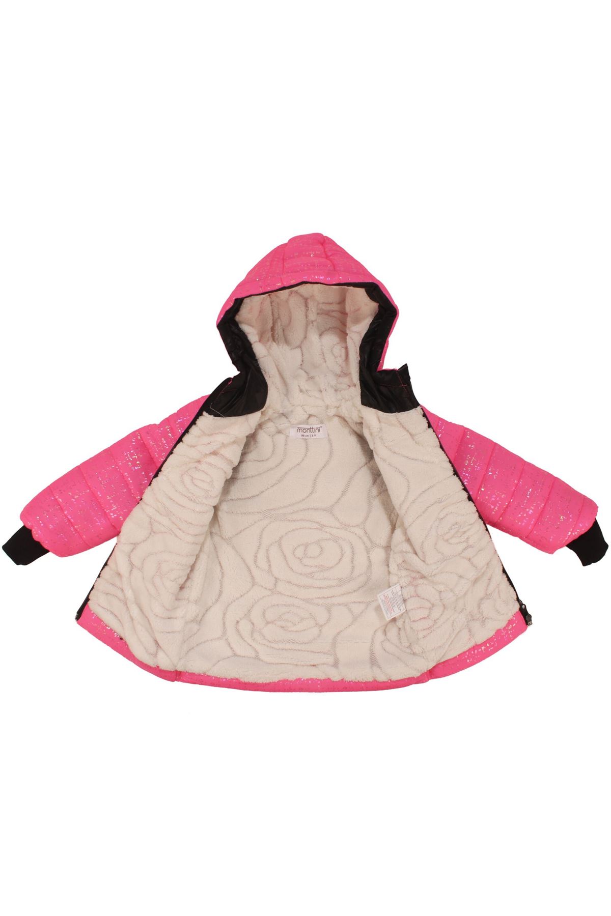 Kış aylarının vazgeçilmezi olan bu parlak fuşya mont, hem şık görünümüyle hem de sıcak tutan iç yapısıyla minik prenseslerin favorisi olacak! İçi tamamen yumuşacık peluş astarla kaplanmış bu mont, soğuk havalarda maksimum koruma sağlar. Dış yüzeyindeki ışıltılı simli parlak kumaş, her ortamda dikkat çekerken aynı zamanda suya ve rüzgâra karşı dayanıklı yapısıyla da konfor sunar.