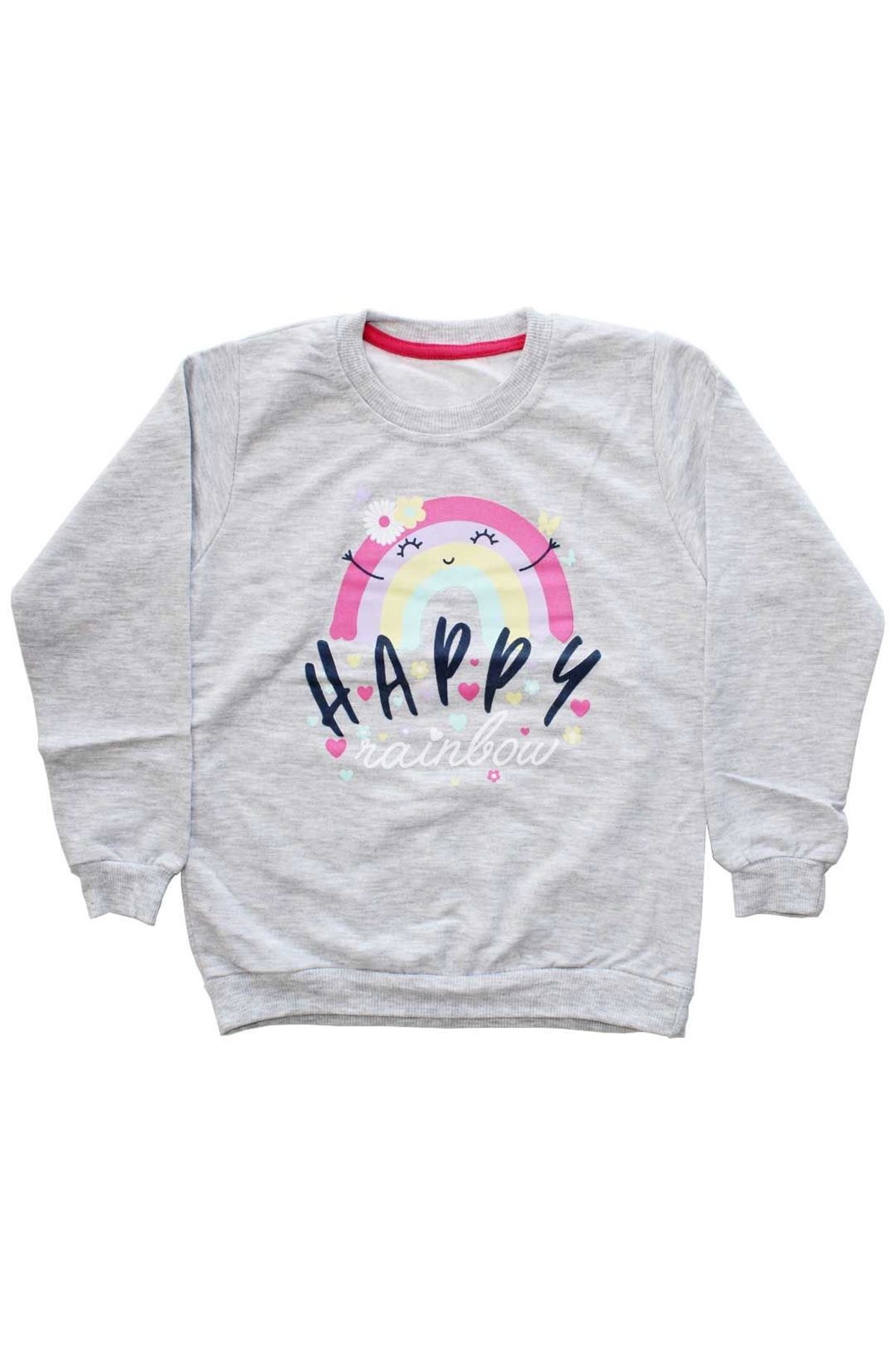 Kız Çocuk Gri Happy Gökkuşağı Baskılı Tek Üst Sweat
