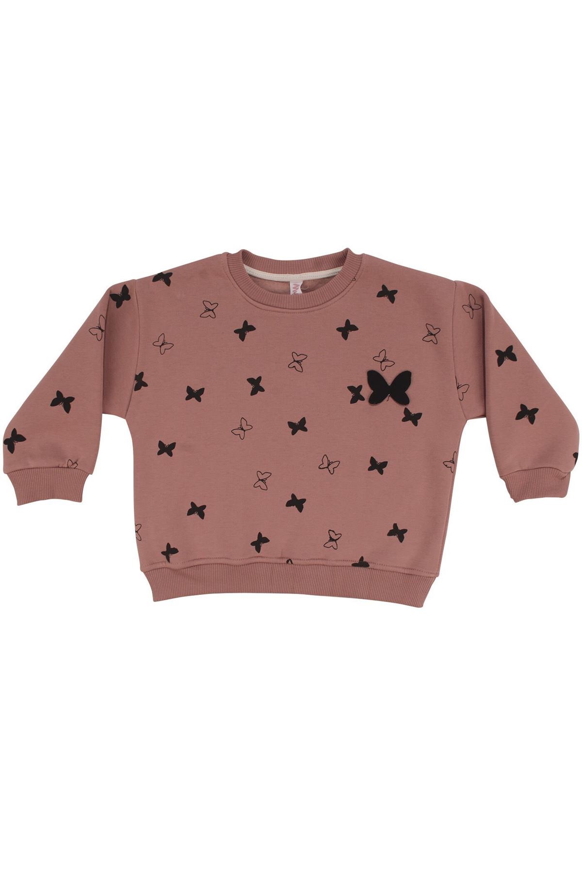 Üst kısmındaki kelebek baskısı, takıma neşeli ve dikkat çekici bir detay katar. Pudra ve siyah renk uyumu, modern ve şık bir görünüm oluşturur.