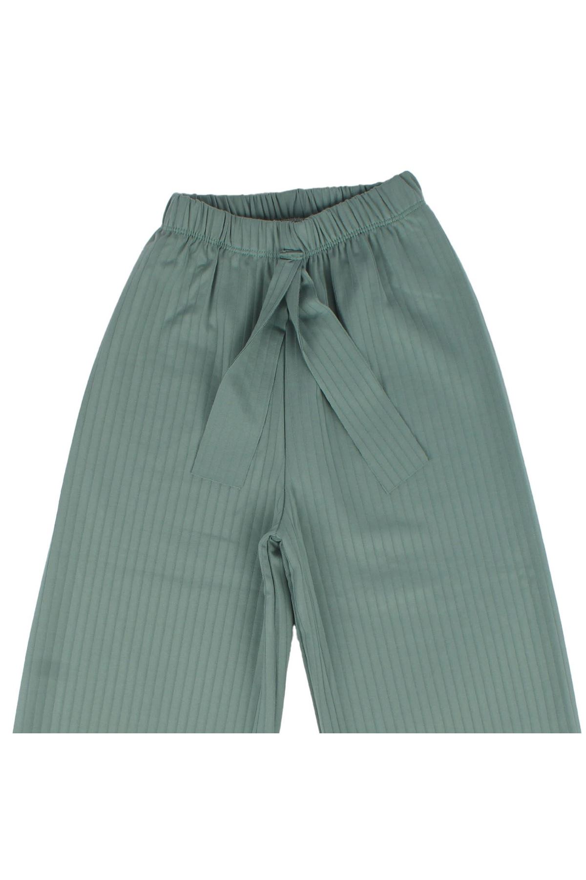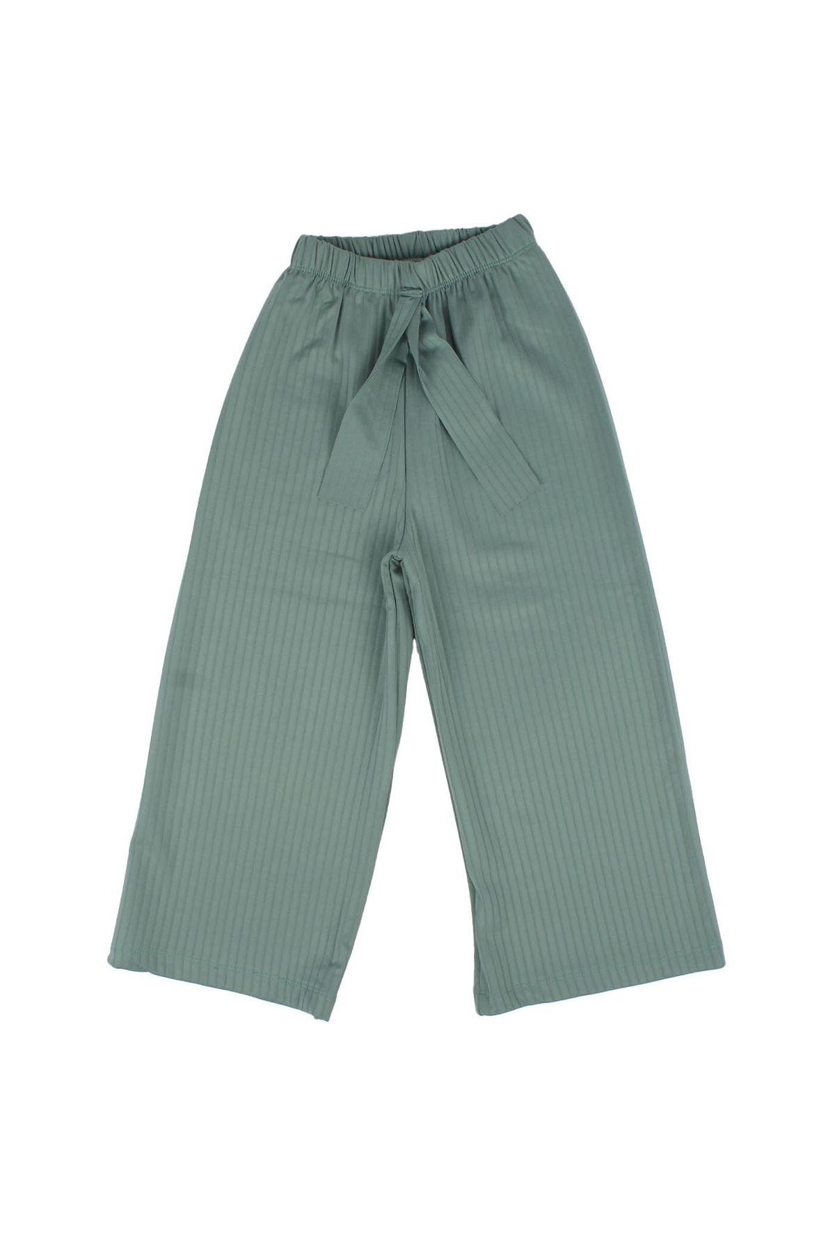 Kız Çocuk Yeşili Fitilli Bol Paça Tayt Pantolon
