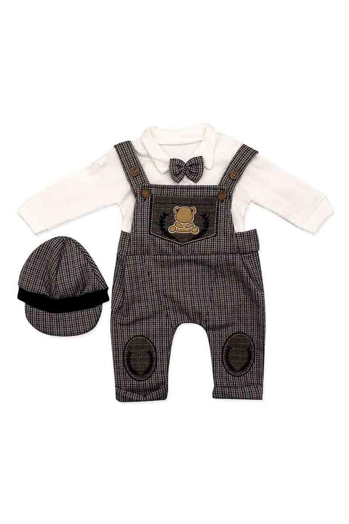 Papyonlu Ayıcık Desenli Kahve Şapkalı Salopet Tulum
