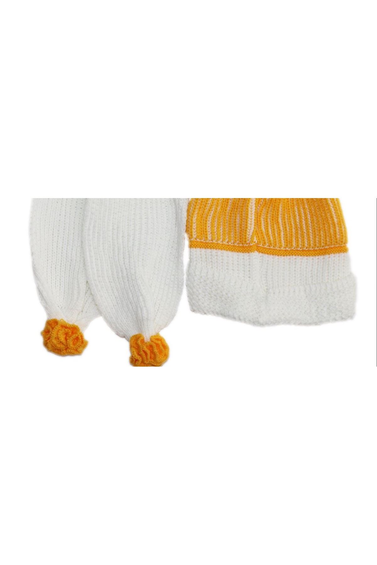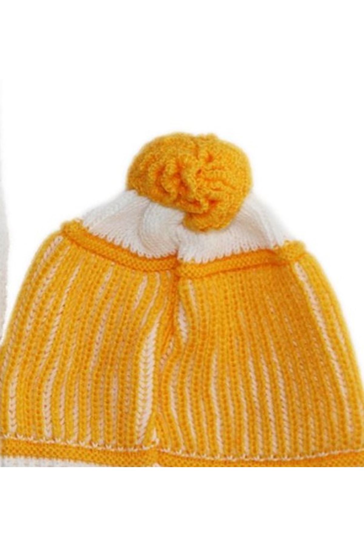 Sade Bebek Atkı Bere Set - Sarı Beyaz