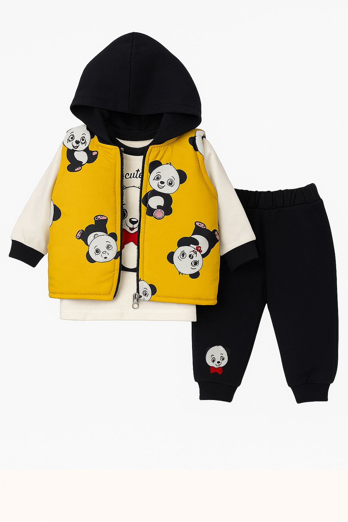 Sarı Siyah Baskılı Şişme Yelekli 3'lü Takım
