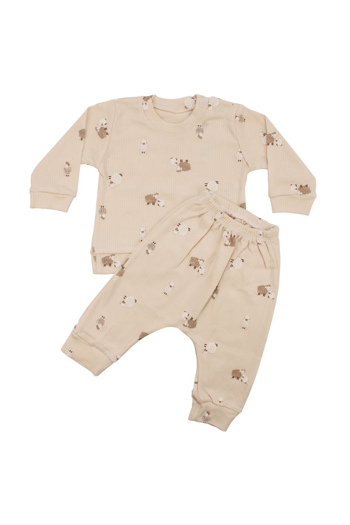 Bej renk zemin üzerinde sevimli kuzulu desenler