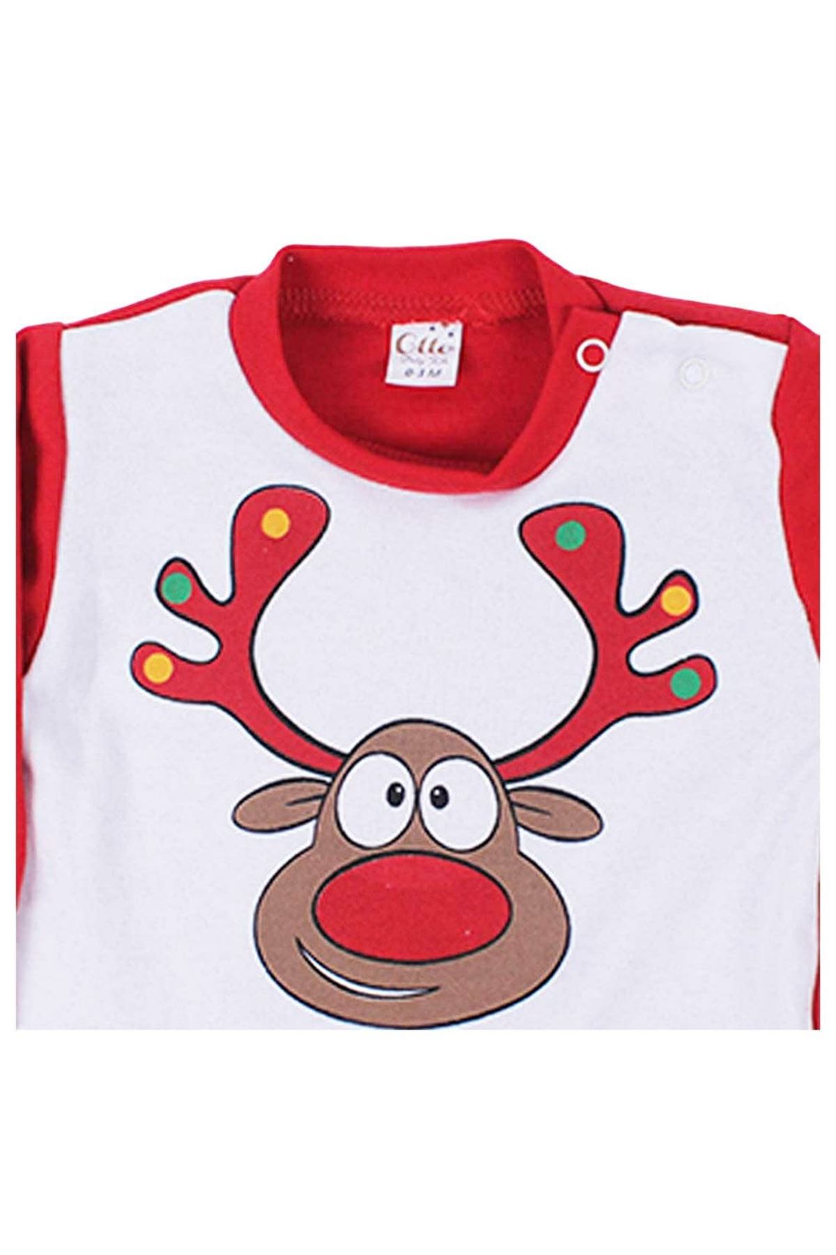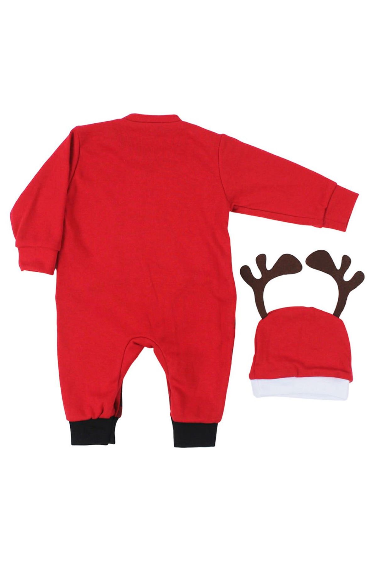 Unisex Kırmızı Ekoseli Geyikli Şapkalı Noel Tulum