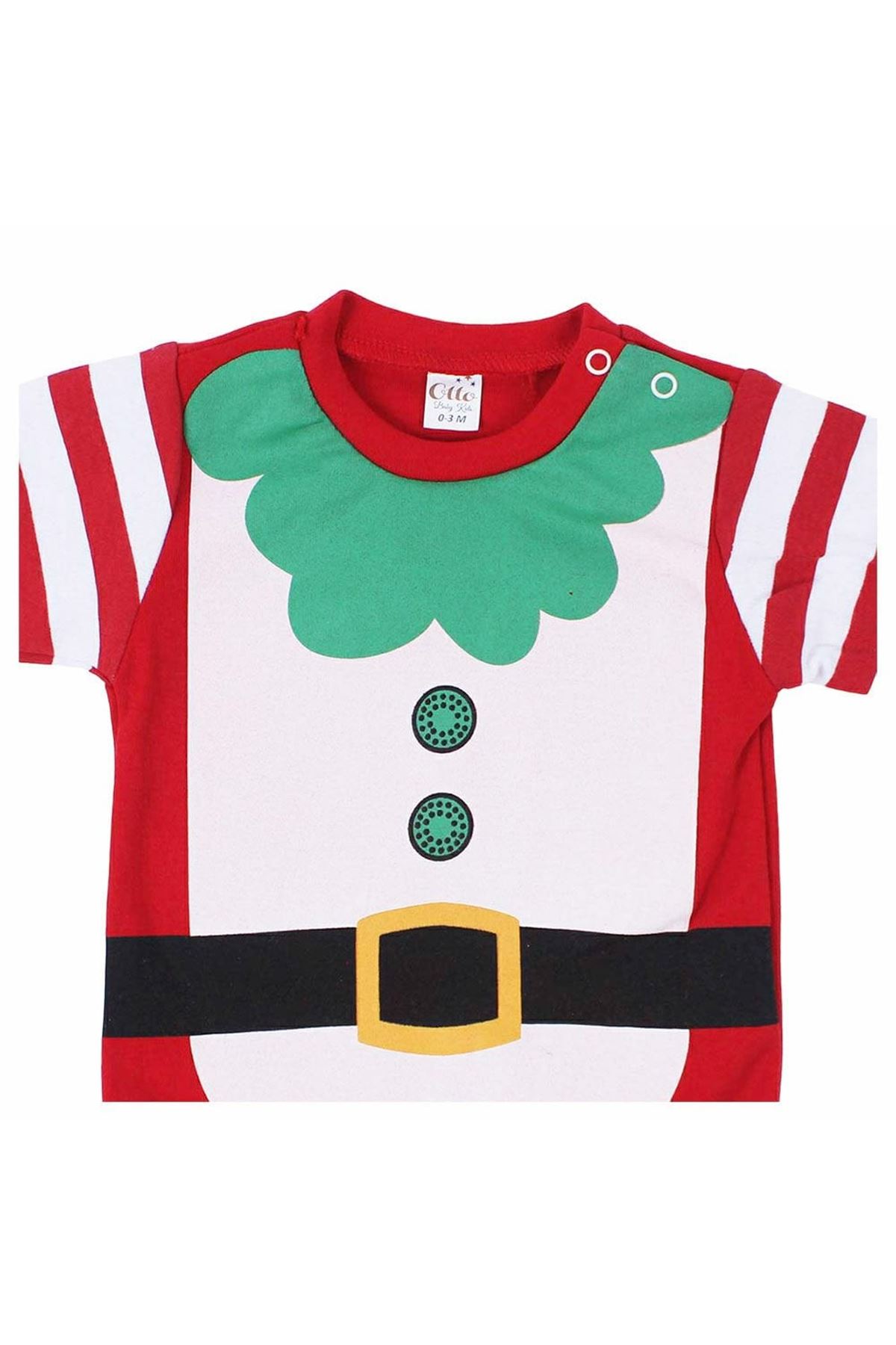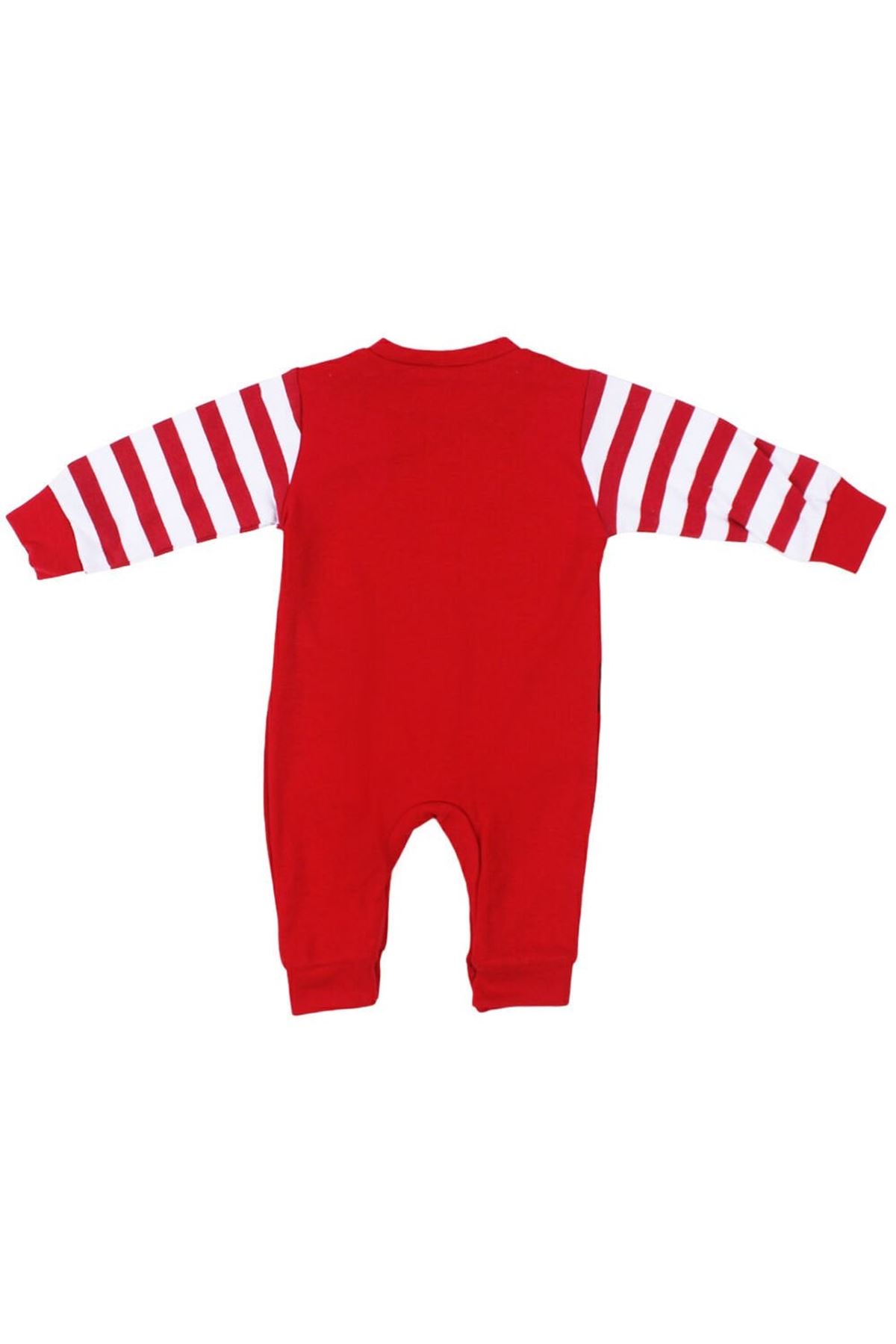 Unisex Kırmızı Kemer Baskılı Kolları Çizgili Noel Tulum