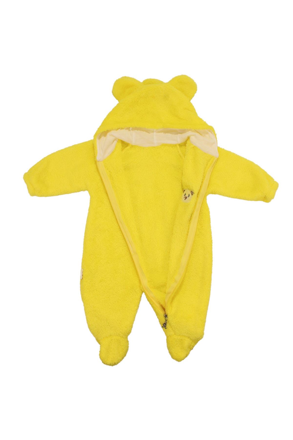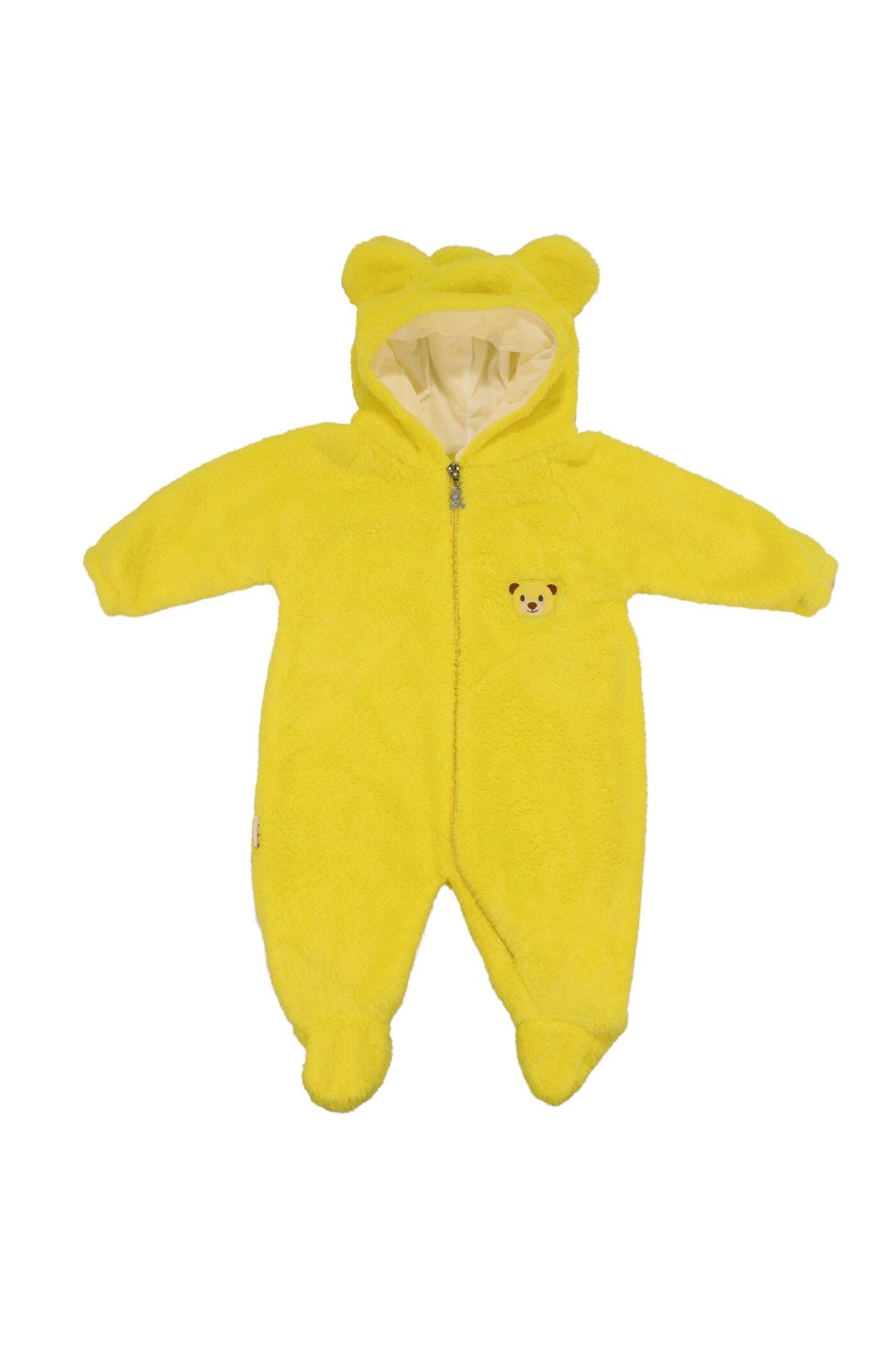 Kapüşonunda ve ön kısmındaki ayı nakışı, tuluma eğlenceli ve dikkat çekici bir detay katar. Patikli tasarımı, miniklerin ayaklarını da sıcak tutar ve pratik kullanım sağlar. Canlı sarı renk, enerjik ve neşeli bir görünüm sunar.
